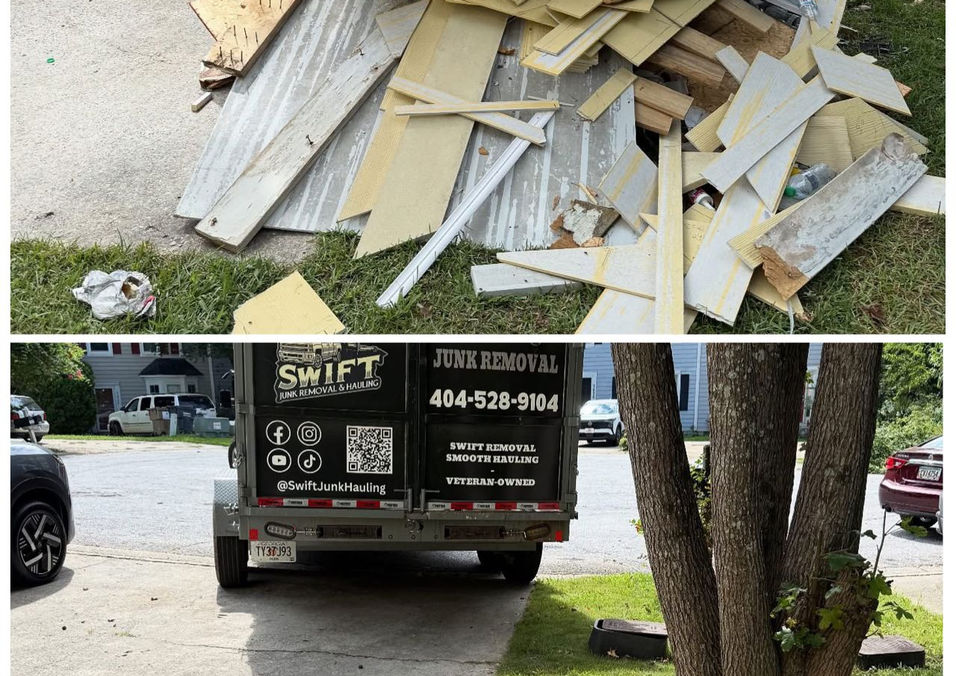Swift Junk Removal and Hauling is a veteran-owned junk removal company serving North Georgia, including Alpharetta, Marietta, Kennesaw, Acworth, Powder Springs, Dallas, Douglasville, and surrounding areas. We specialize in full-service junk removal and hauling, offering residential and commercial waste removal, light demolition, estate cleanouts, garage cleanouts, and complete home and business haul-away services.
